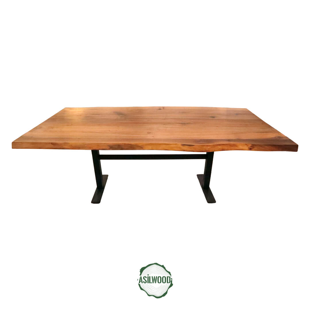 Ceviz Yemek Masası – Doğal Kenar, Metal Ayak, 2 m