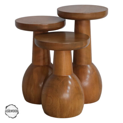 Gordion antik kentinin mimari dokusundan alınan ilham, Asil Wood deneyimiyle taştan ahşaba dönüştü. Kayın ağacı, CNC teknolojisinin hassas ölçümleri ve usta el işçiliğinin gönülden dokunuşlarıyla özenle işlendi. İşlenen kayın ağacı, kimyasal içermeyen ondan fazla uluslararası sertifikalı özel renklendirici ve ithal solüsyon çözümleriyle sanat eserine dönüştü. Gordion 1007 Mantar Sehpa Takımı, Asil Wood Mantar Sehpa Koleksiyonunun eşsiz bir parçasıdır.