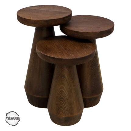 Alinda 4001 Doğal Ahşap Üçlü Mantar Sehpa Takımı