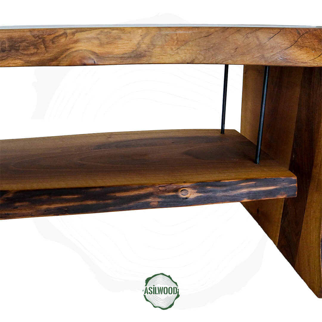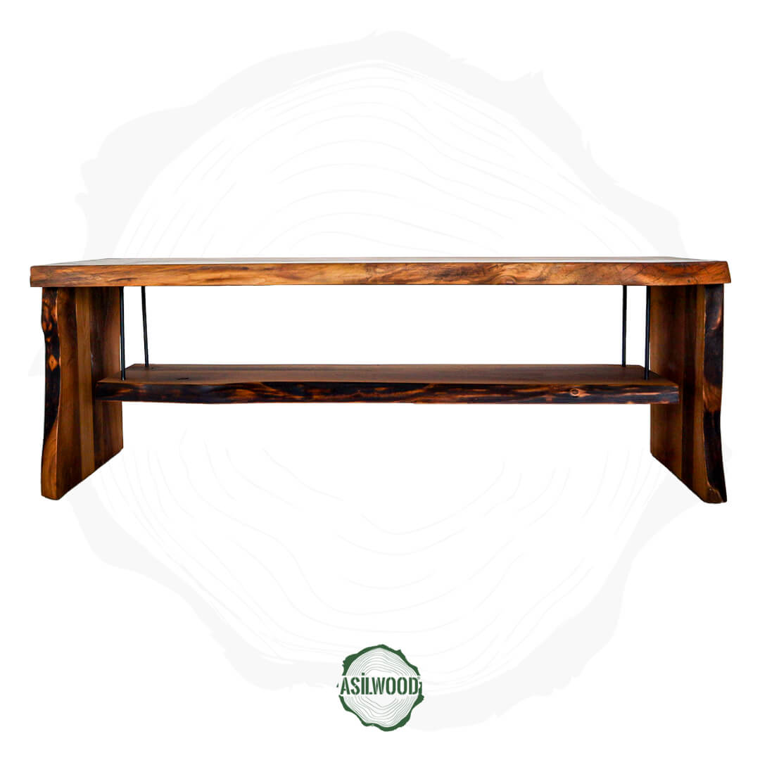 Rustik Stil Masif Ceviz TV Ünitesi – Canlı Kenar iç mekânınıza ceviz ağacının doğallığını yansıtır, eşyalarınızı depolama ve sergileme imkânı sunar.
